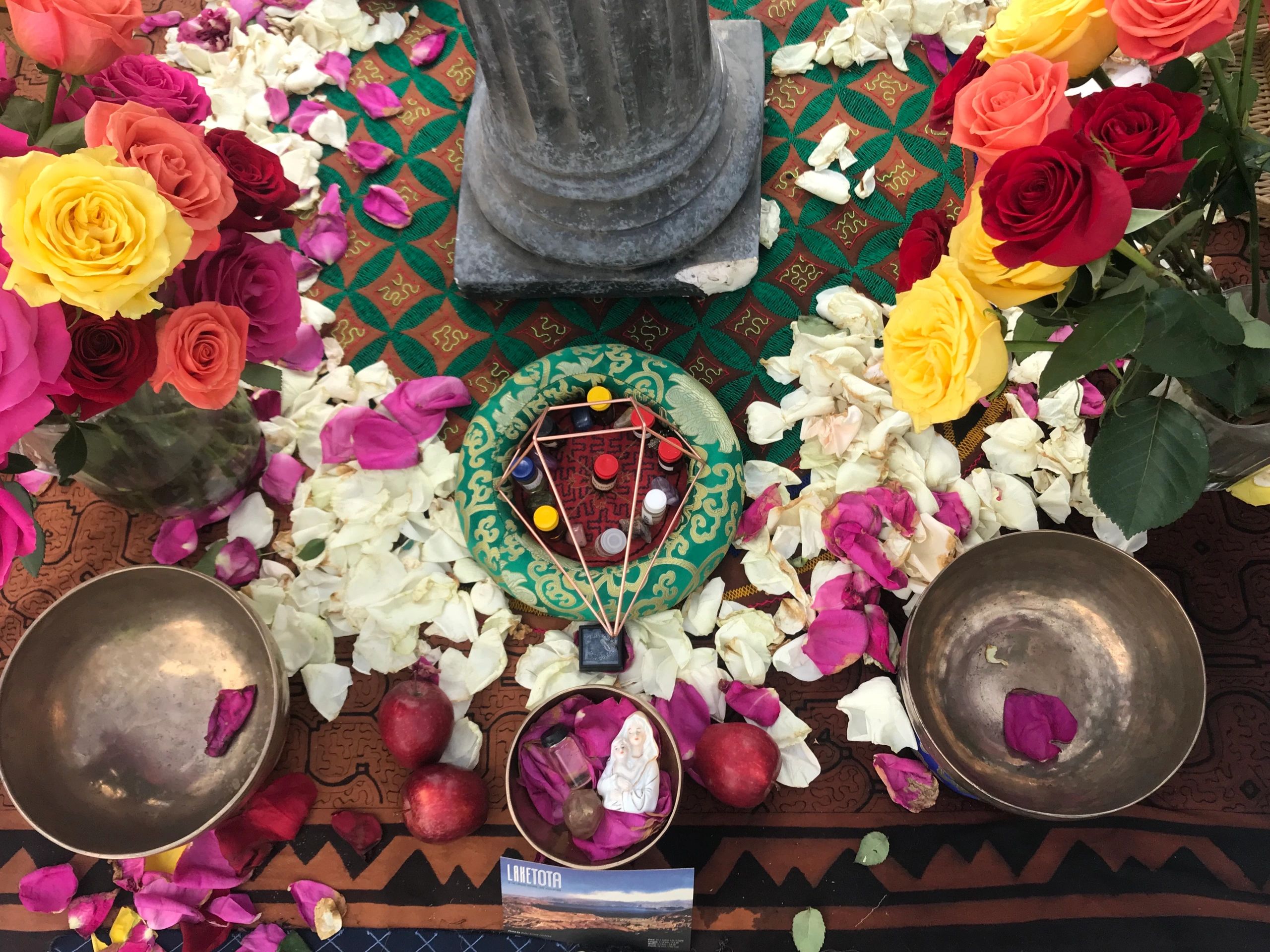 Together we will create an altar of sacred items for your community and a mandala of flowers, inviting you and your guests to become artists and open inner creativity,